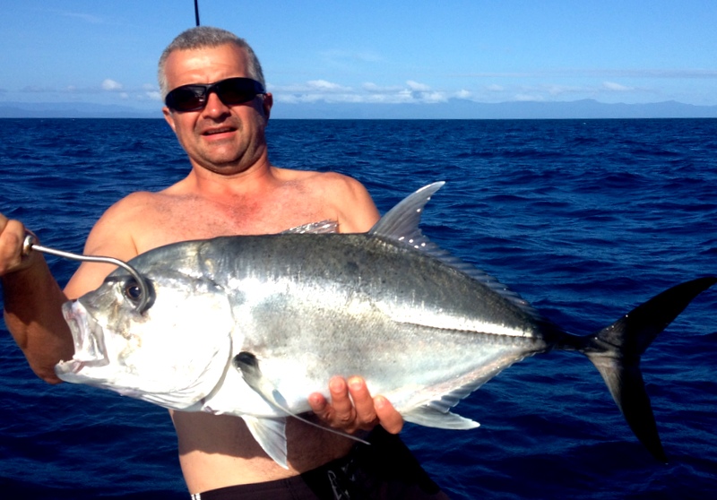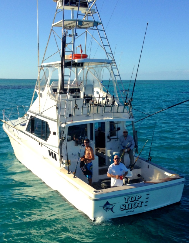 We returned to fish heavy tackle out of Cairns last week and although it was very quiet we did manage to hook up and fight an estimated 600lb black marlin which sadly got eaten by sharks. We counted some 20 boats most days, all fishing the Opal Ridge and the Linden Bank area and from all reports only half a dozen marlin were caught and released during our 3 days. Being one of these boats zig-zagging along the continental shelf drop-off, towing two big baits is such a buzz. Knowing that at any minute you could easily encounter that 1000lb+ fish of a lifetime is what makes this fishery world class. Although we missed the hot bite two weeks ago, this season has been considered probably the best ‘big fish’ bite since the 1980’s which is exciting to see the Cairns fishery in such good condition! However, as I have said before, its not all about the marlin – even the bait fishing is fun, and then you squeeze in a quick spear before heading out and you have the ultimate day! Click on the shots below to enlarge.