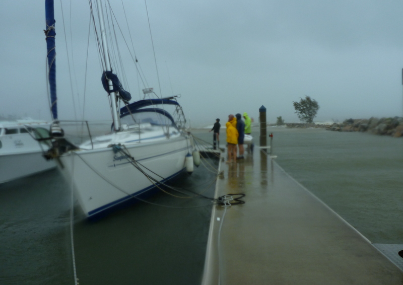 Walking around the marina over the past few days, and observing the damage, it is obvious a few owners have learnt some valuable lessons over the weekend. From the need to have heavier mooring lines, to better high wind preparation such as stowing bimini’s, sun covers and loose equipment ahead of a big blow! It amazed me that the marina was like a ghost town Saturday. Apart from David and myself I hardly saw another person making any sort of preparations. It was a different story Sunday with plenty of volunteers helping out but of course in most cases this was almost too late!