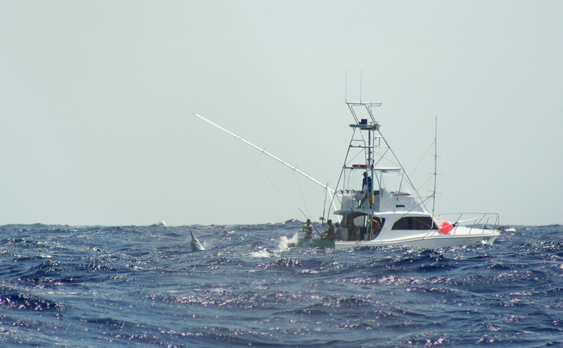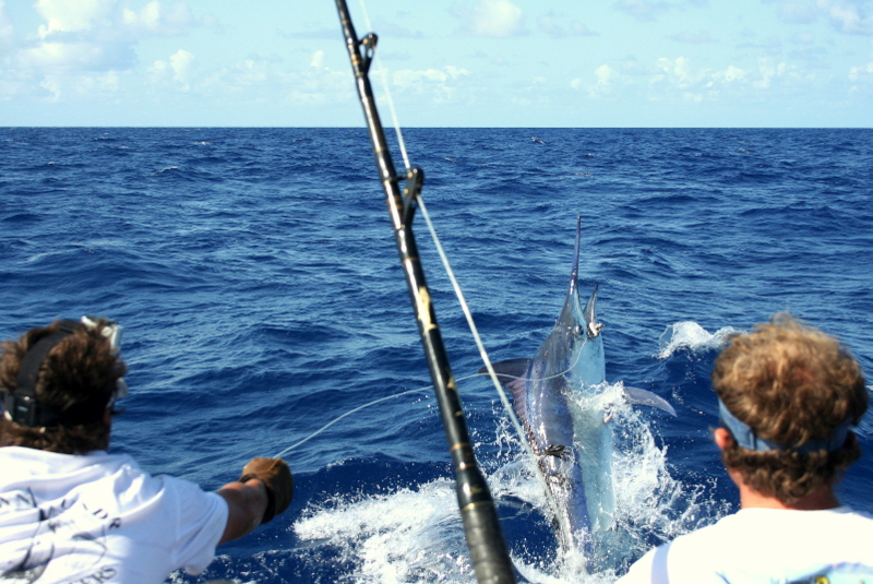 Giant black marlin fishing on the Great Barrier Reef is without doubt the pinnacle of fishing, so it’s little wonder it attracts anglers from around the globe. No where else in the world do you have a greater chance, at any minute, of catching a ‘grander’ black marlin, that is a fish that weighs over the magical 1000lbs mark! Measuring over 14 feet in length, 6 foot in girth and a 20 inch tail circumference, these beasts are serious fish. I once heard a captain say – if they growled you’d be too scared to catch one!!