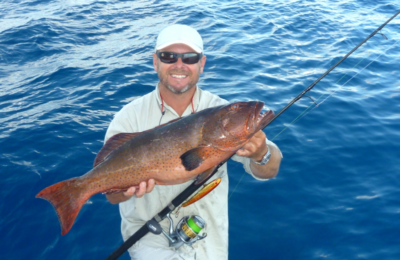 Reading the reports on blackmarlinblog.com leading up to our trip, expectations were high, with an impressive 7 fish over 1000lbs released during the Lizard Island Tournament two weeks before we arrived. The fishing had slowed but was gradually on the improve with the moon phase when we arrived. We averaged 1 to 2 fish per day, from around 4 bites per day, which is average for the Cairns fishery. Our fish ranged in size from 150lbs through to an estimated 1,100lbs fish which jumped off after less than a minute. Given the bite is usually in the afternoons, the mornings are mostly spent bait fishing and spearfishing to put Coral Trout on the table.