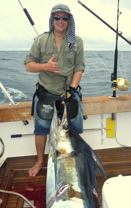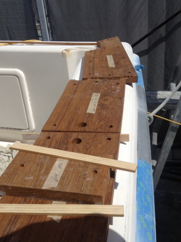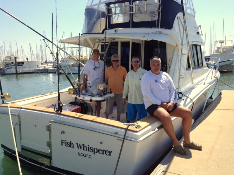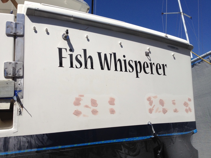 When the owner of well-known Sunshine Coast sportfishing boat Fish Whisperer decided to carry out a mini re-fit, he appointed Professional Boat Care to project manage the work. I first met the owner, a well known property industry identity, when I guided him Blue Marlin fishing off Brisbane a couple of years ago. He had a long list of improvements he wanted us to carry out, including re-pitching the propellers to try and gain some more speed, adding beautiful teak covering boards to his cockpit, fitting new outrigger bases, new rod holders, decommissioning the lower helm station to build in a new flat screen TV and ice maker, improving the transom set up and repairing the marlin bill scratches, adding bolster cushions to the cockpit, antifouling and polishing – all before the September school holidays which gave us 3 weeks!