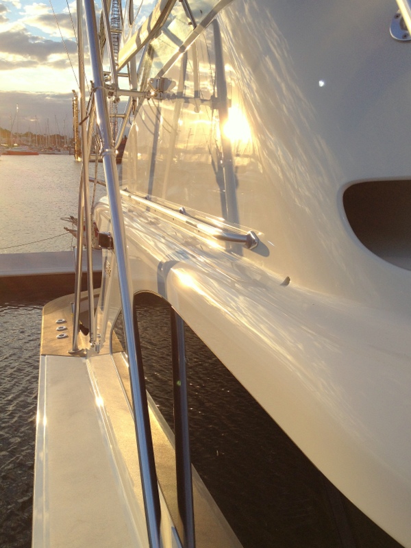 One of our most recent jobs was polishing the magnificent Assegai 44 ‘Megumi’. She is owned and operated by Brisbane Sportfishing Adventure Club and captained by Ken Brown, or ‘Brownie’ as he is better known from his Channel Seven days.
