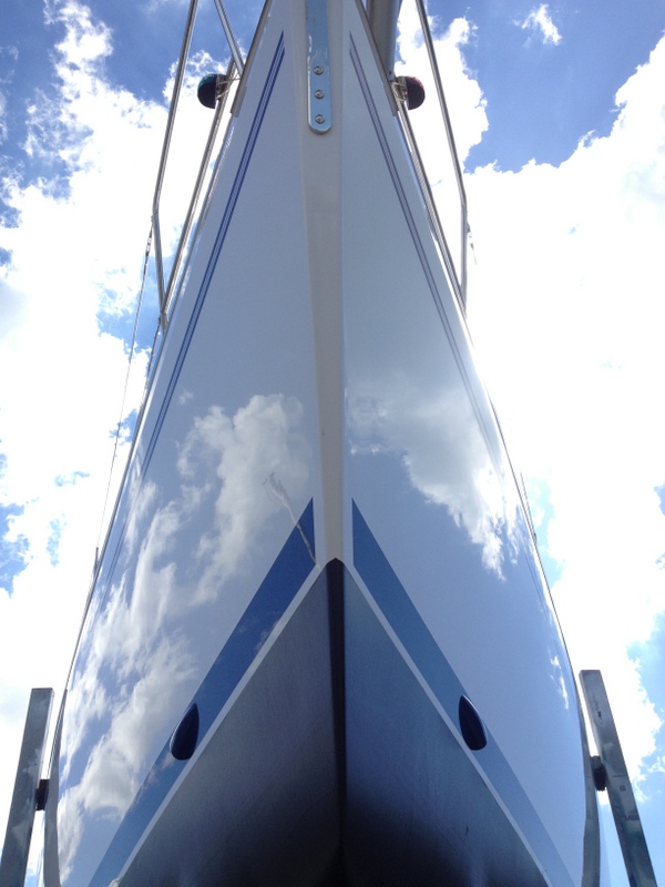climate I have found no polishes last much longer than about a year. Some hold up better than others but this is mostly to do with the structure and composition of the surface. Interestingly some gelcoat seems to dull more quickly than others. Although two pack paint holds up the best to weathering, it is usually a thinner coating than gelcoat, so you don’t want to let it oxidize and require cut and polishing too often. If you want your boat to look good between annual polishes then regular’ top up’ polishing is required. By that I mean apply a surface protecting polish every month or two. Flat surfaces that get the most sun will need the most attention through the year. Cap rails, toe rails, around the front of